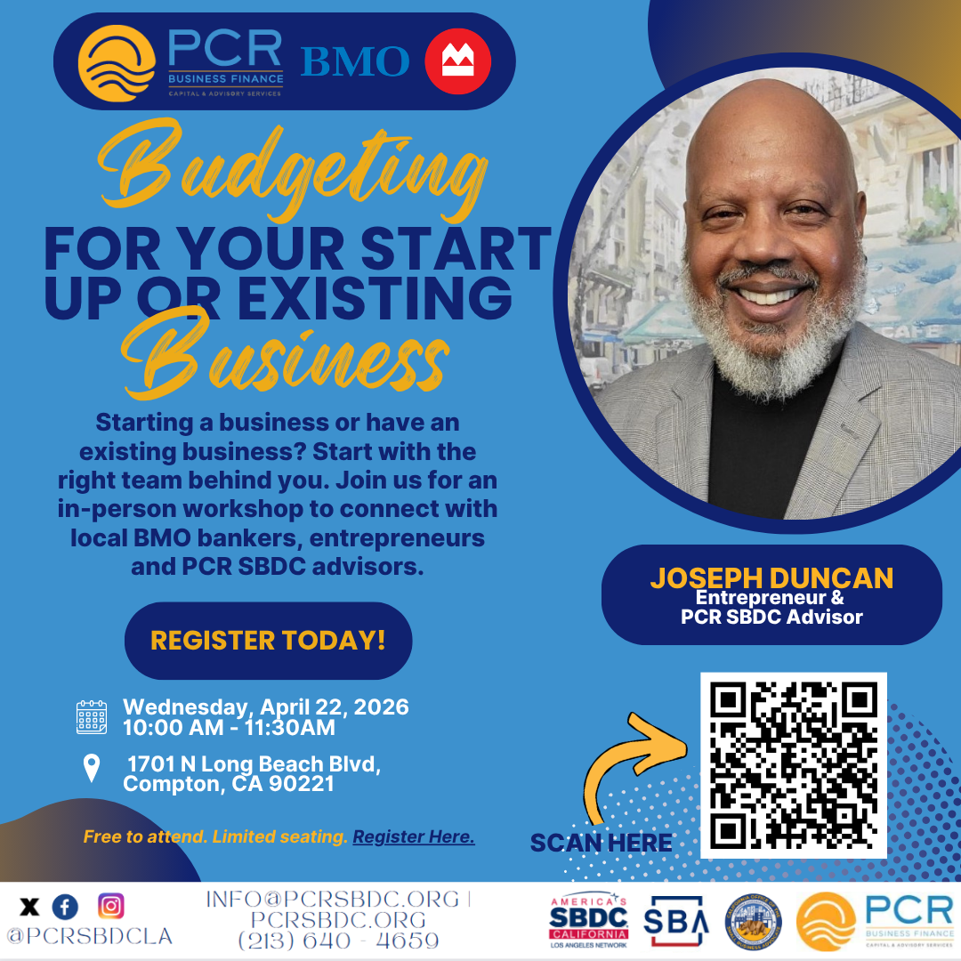 IN – PERSON BMO and PCR SBDC: Budgeting for Start-Ups and Existing Businesses Startup Workshop Series – Compton Focus PART 2 BMO and PCR SBDC invite you to the launch […]