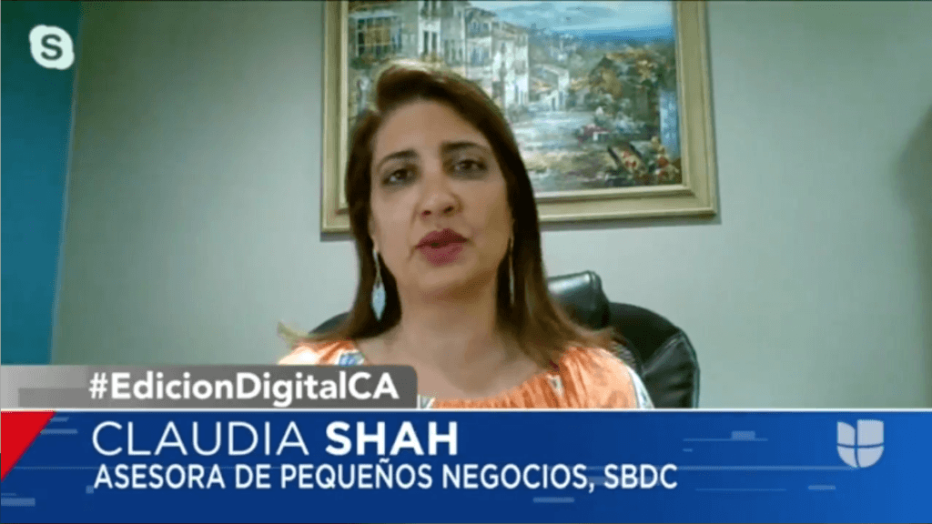 LA SBDC Spanish language advisor Claudia Shah was interviewed by Univision TV on March 20, 2020 about the SBA’s Economic Injury Disaster Loan in response to COVID-19 and how the SBDC can help.